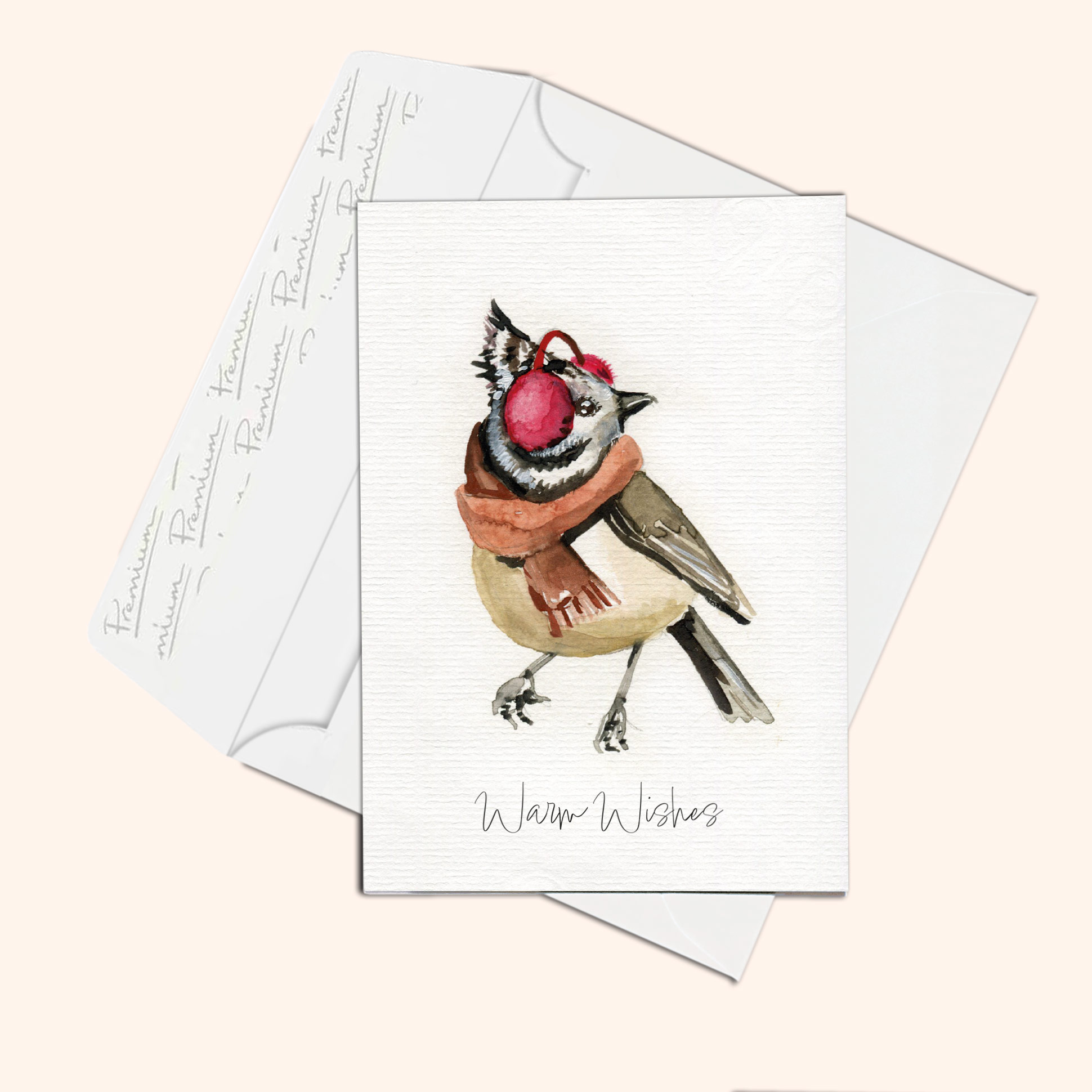Weihnachtskarte Rudi, die Haubenmeise